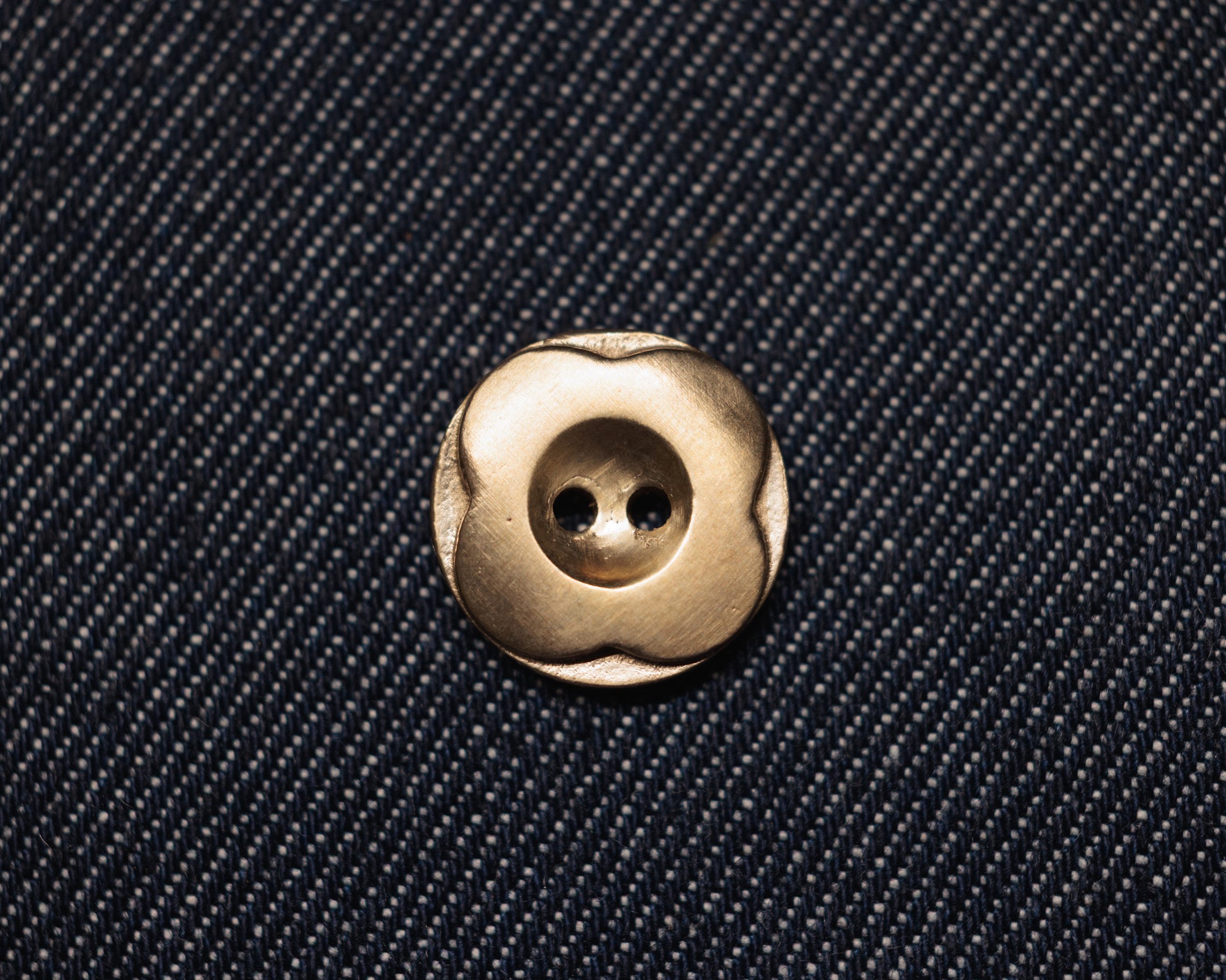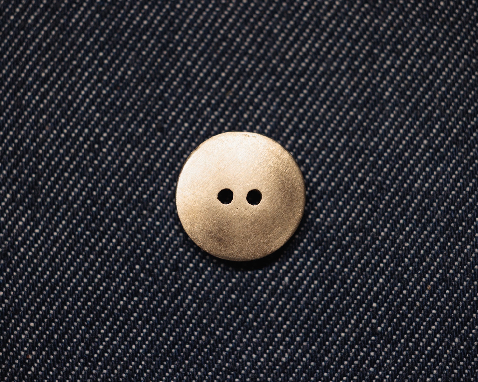 Cast in brass and finished by hand, these buttons have a grounding weight, ideal for use on utility pieces: denim, chore coats, or workwear-inspired outer layers.